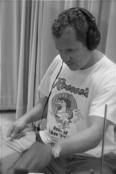 Paul Pellegrin is a "polyrhythmic force on drums and percussion" (Gapplegate) and a composer working in Los Angeles. His approach to music involves complex rhythmic and melodic counterpoint and modulation. He usually begins by exploring hybrid rhythmic phrases in a polymetric time (e.g., 5/3/4, 7/5/3, 6/7/9, 8/12/15) and from this builds the melodic components of a song. He likens these hybrid phrases to "claves" (in an Afro-Cuban sense), because, although they are not always explicitly heard in the music, they are the rhythmic "keys" that allow the song--or the musicians while improvising--to modulate to different feels or meters, somewhat akin to African music, but with the intention of being even more stratified (if that is possible).